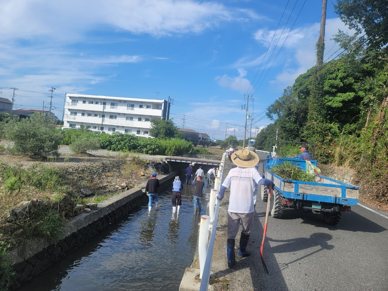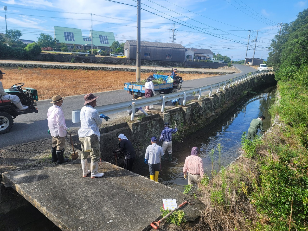 吹上町では毎年9月の第一日曜日に中心部を流れるお堀の清掃を地域住民で実施しています。