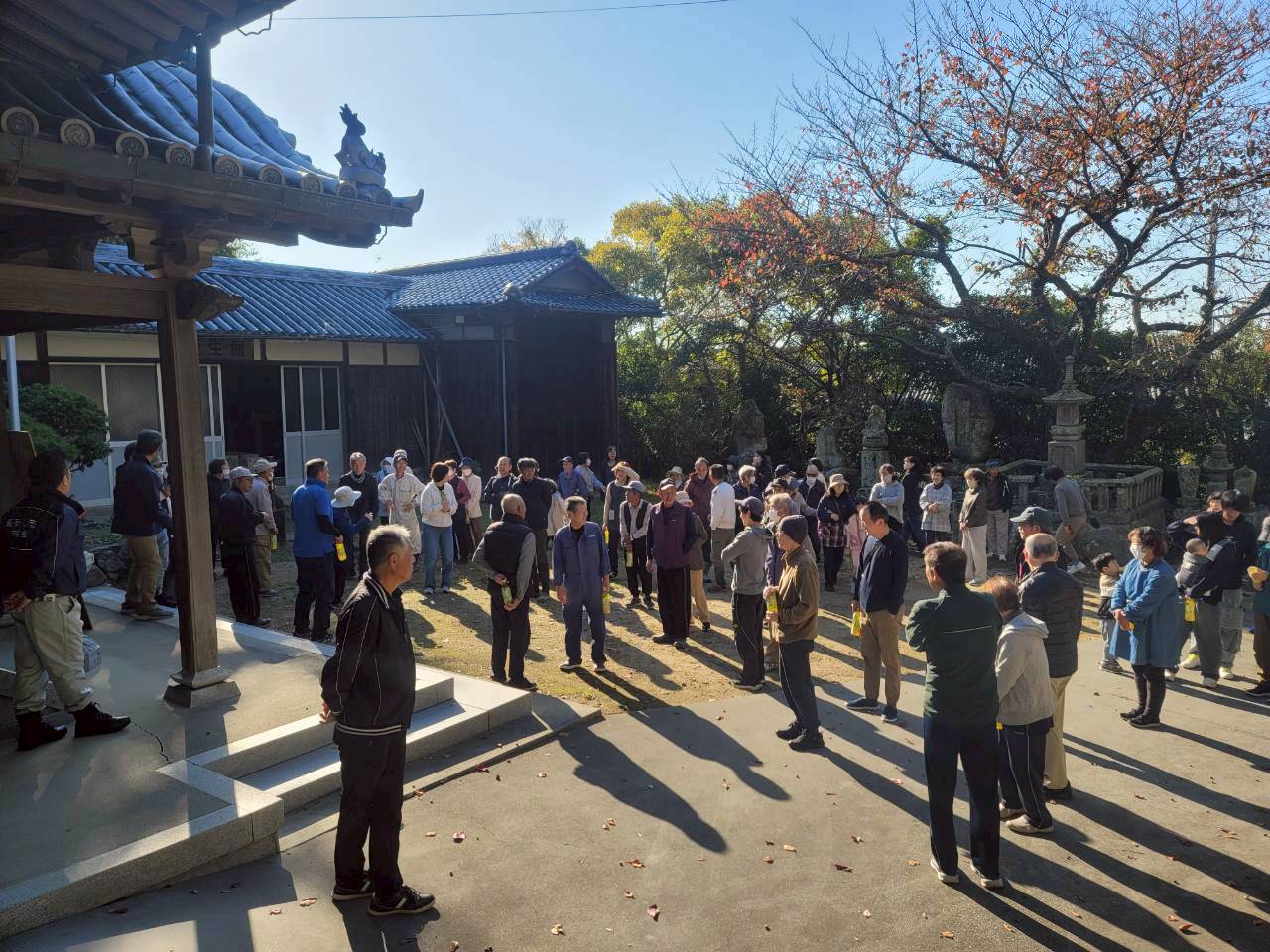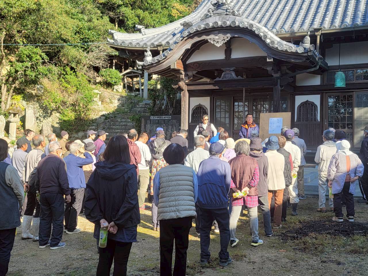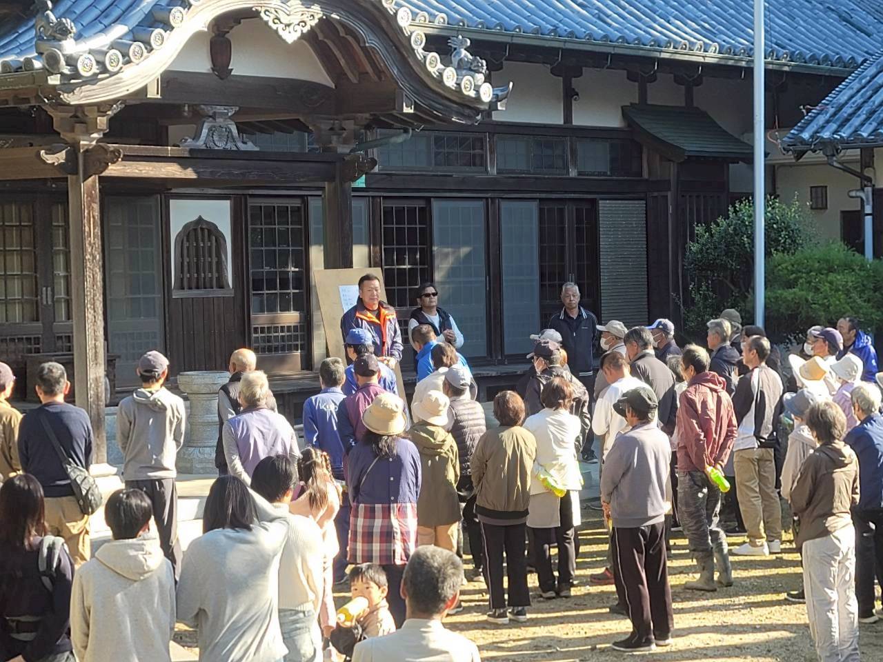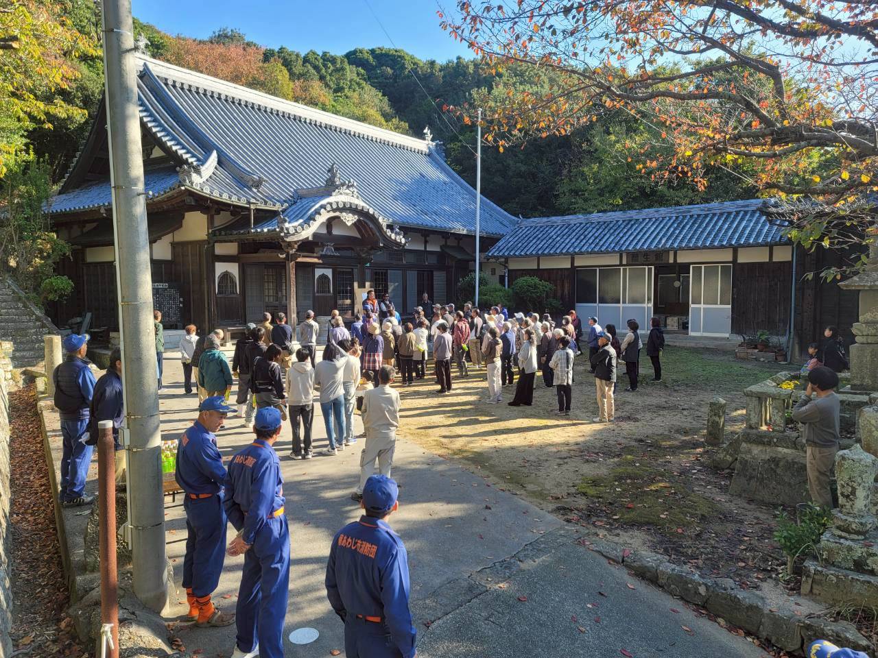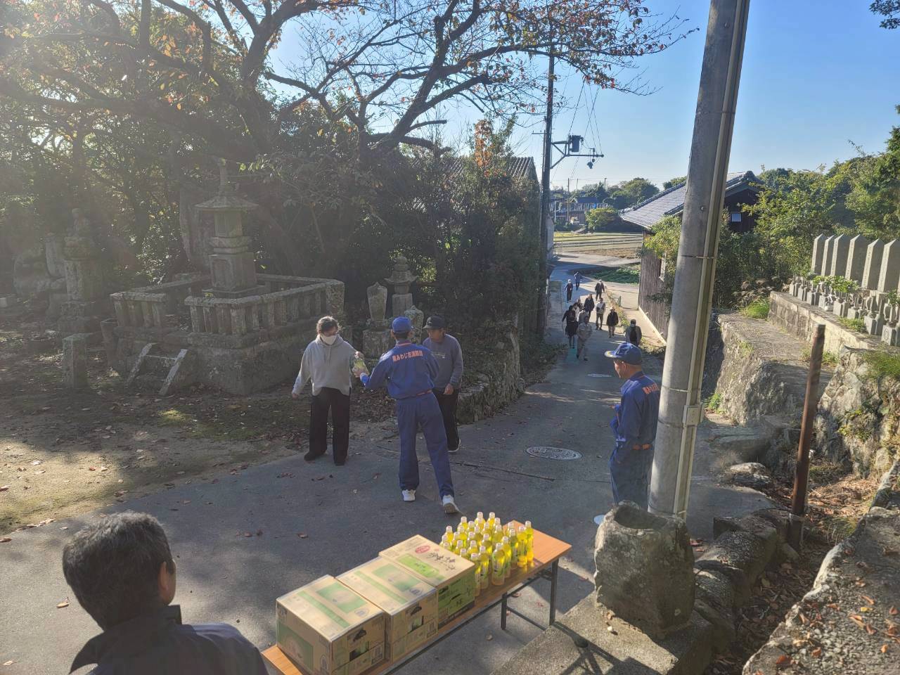 11月16日 防災訓練がおこなわれました 住民の方へ 2025.11.17 11月16日(日)に阿万地区防災訓練がおこなわれました。 吹上町第1避難所(大日庵)へは90名の皆さんが集まりました。 また、昨今、日本各地で自然災害が発生しています。 吹上町自治会としても備えの必要性を感じており、今年の防災訓練にあわせて賞味期限10年の保存水、約2,000本を避難場所の物置と庵の室内に保管しました。 前回のリンク だんじり小屋の脇から上がる避難道の広場に設置しています。